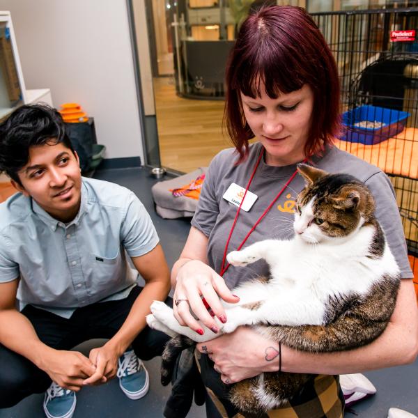 Mientras estés aquí, nuestro amable personal puede responder cualquier pregunta y proporcionar información sobre cómo adoptar, servir como hogar temporal, o ser un voluntario.